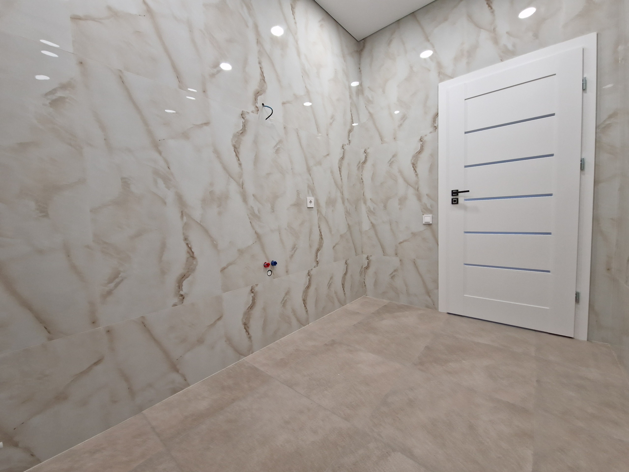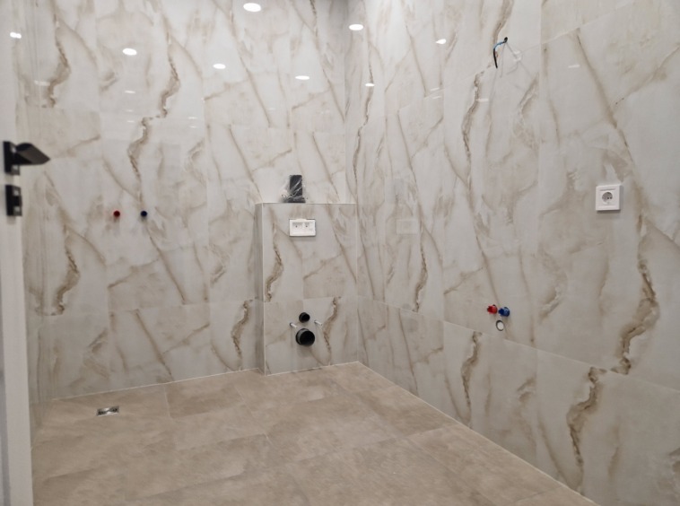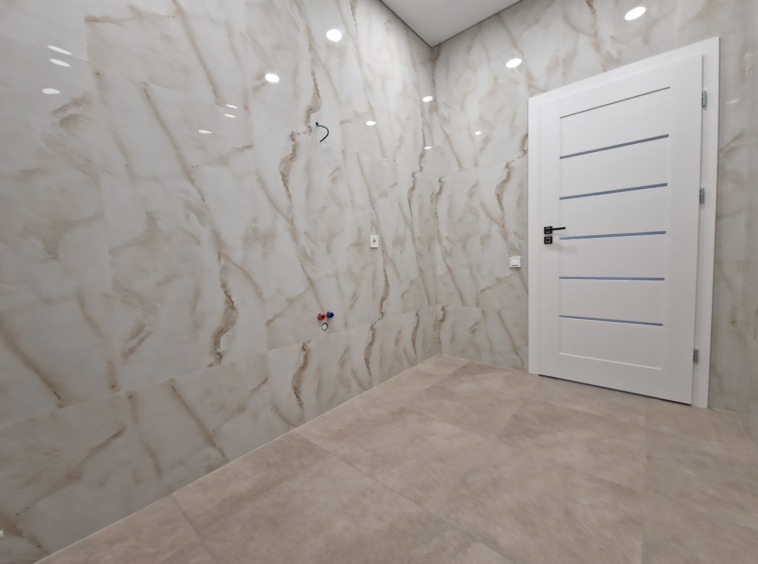 – įrengtos įtempiamos lubos su apšvietimu